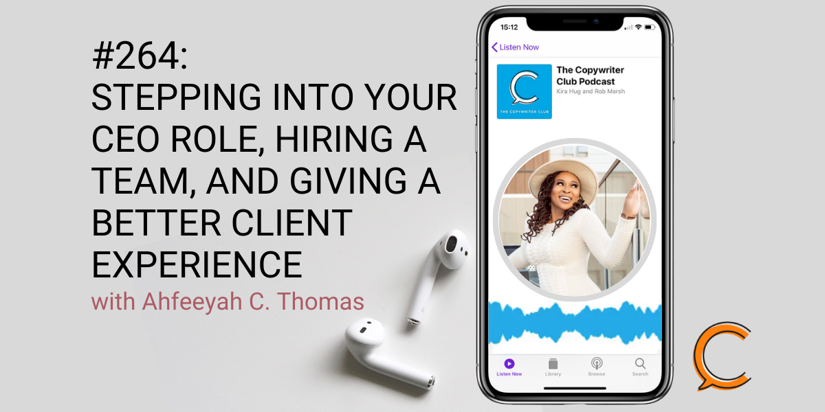 Kira: Running your own business is hard enough. There are countless tasks you need to carry out. And sometimes it can just feel like way too much. What needs my attention first? Should I hire someone to help? And if so, who should I hire? Well, if you’re growing your business, you’re not alone. Ahfeeyah C. Thomas joins us to talk about how to hire a team and become a scalable CEO on the 264th episode of The Copywriter Club Podcast.