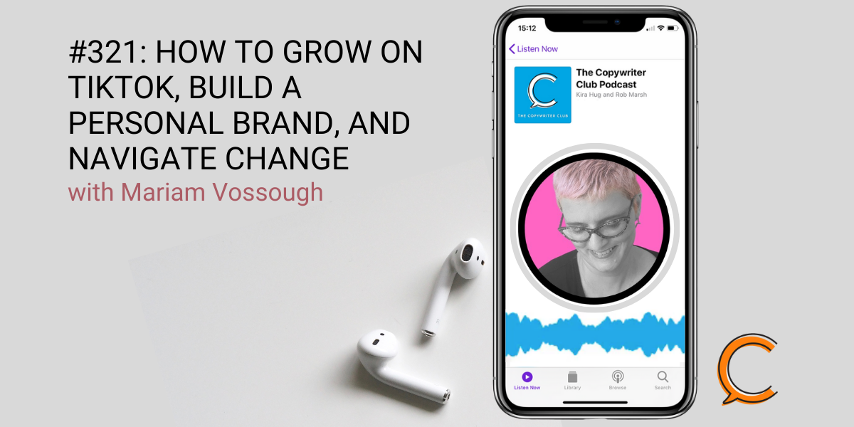 Mariam Vossough is our guest on the 321st episode of The Copywriter Club Podcast. Mariam is a copywriter and scriptwriter who is breaking into TikTok as a means to connect with her ideal client: Gen X women. The insights she shares will not only help you become a better writer but just might give you the courage to give TikTok a shot.