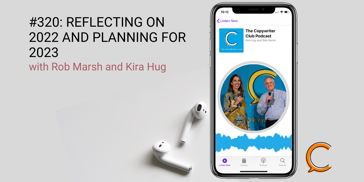 On the 320th episode of The Copywriter Club Podcast, Rob and Kira sit down to debrief 2022. What worked? What didn’t? And what’s coming up in the month of December and into the new year? As you begin to reflect on the past year and plan for the next, you’ll find advice and book recommendations to guide you into a successful 2023.