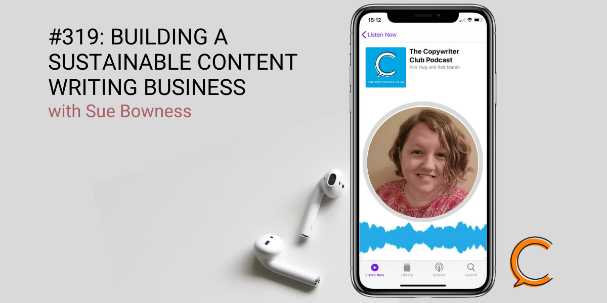 Rob Marsh: We talk a lot about copy on this podcast. I mean, it’s in the name, The Copywriter Club Podcast. So over the past few years, we’ve spent hours talking about persuasion, and sales, and calls to action, and dozens of other copywriting strategies and tactics. We don’t often talk about content, although the last couple of episodes we have talked about content, but it is a really big part of the work that many copywriters do. So today’s guest on the podcast is content writer and strategist Sue Bowness. We asked Sue why more copywriters should take on content projects. We also talked with her about the things that she’s done that had the biggest impact on her business, how disciplined she is with her schedule, and a lot more. So stick around to hear what she had to share with us.